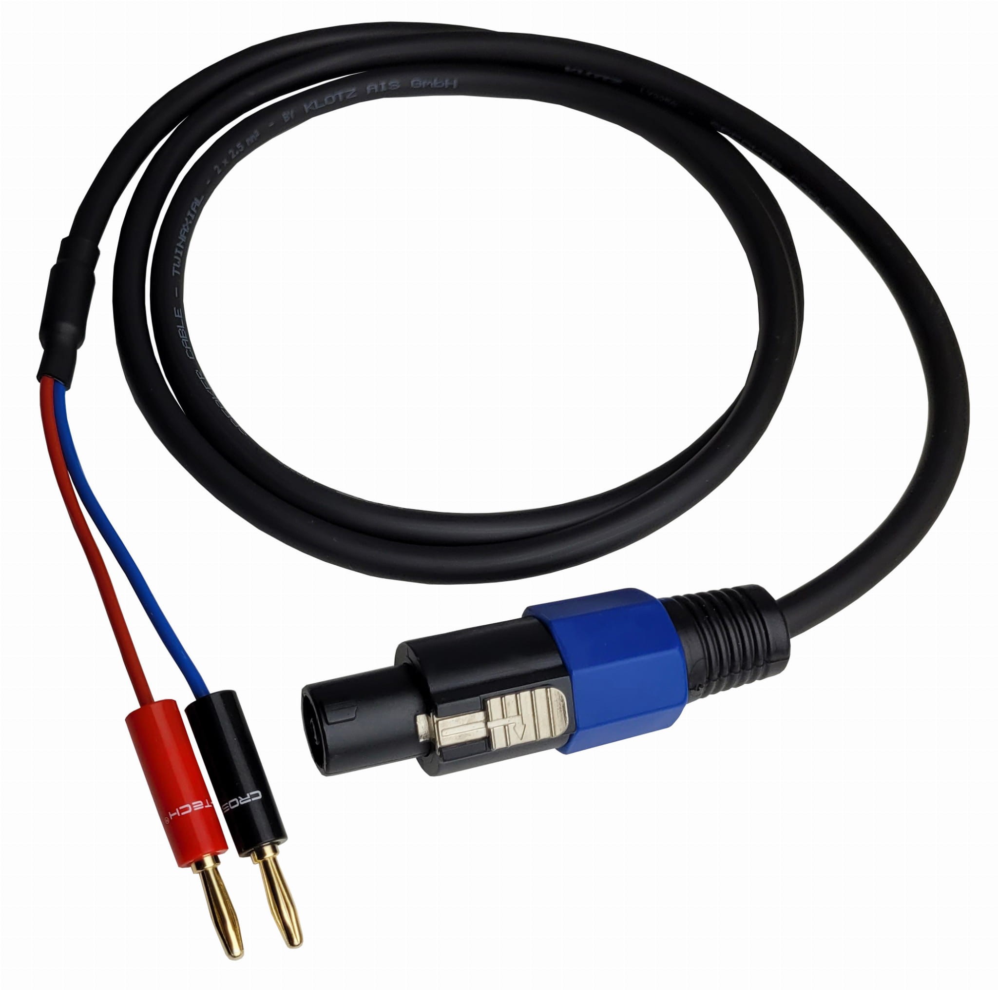 Kabel głośnikowy z miedzi beztlenowej firmy KLOTZ o przekroju 2,50mm2 w solidnej i eleganckiej konfekcji. W kablach zostały zastosowane wysokiej jakości wtyki SPEAKON oraz Cross-Tech W3 banan. Kabel Speakon na 2xW3 banan został stworzony specjalnie dla klientów, którzy cenią sobie najwyższą jakość w połączeniach audio.