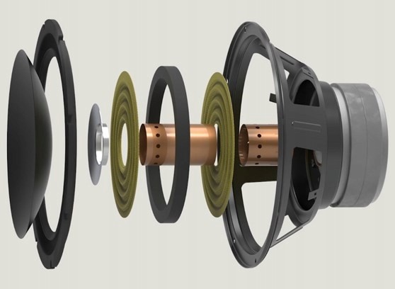 - Głośnik niskotonowy: 12" (305 mm) z potrójnym zawieszeniem i o dużym wychyleniu liniowym